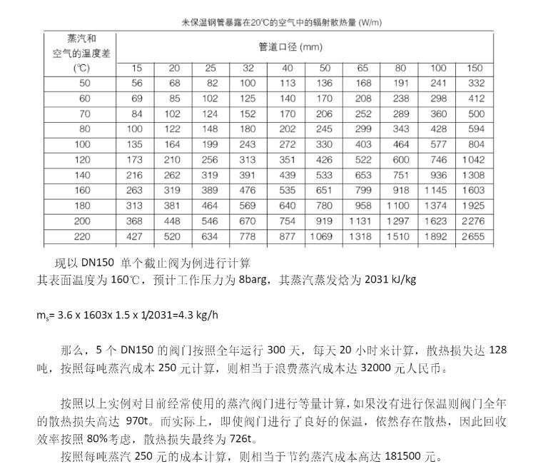 蒸汽閥門的散熱損失如何做計算和統計