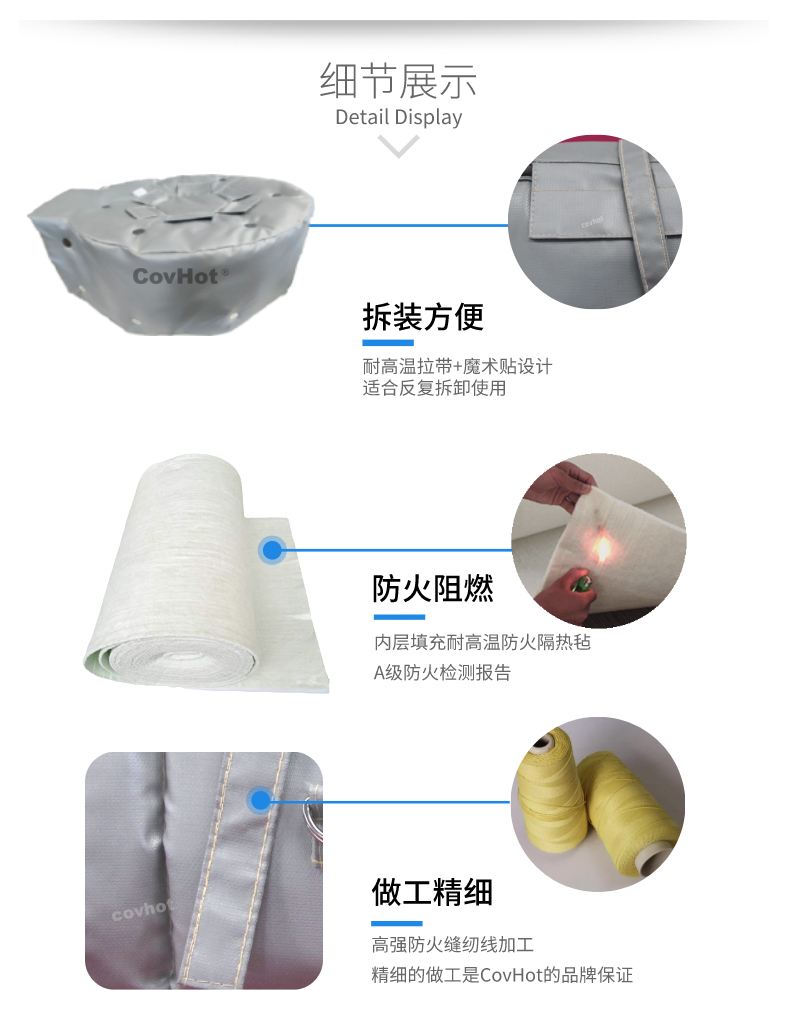 然而,如果選用可拆卸保溫套的話,這些食品生產(chǎn)保溫隔熱工作便不會出現(xiàn)上訴問題。可拆卸保溫套是根據(jù)設(shè)備的外形尺寸而量身設(shè)計制作的,安裝好后保溫隔熱效果顯著,且美觀大方。可拆卸保溫套屬于柔性制品,通常采用魔術(shù)貼或拉帶等方式搭接,具有拆裝便捷,可反復(fù)循環(huán)使用等特性。