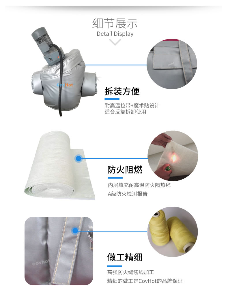 可拆卸式泵體保溫套,也可以叫做泵體保溫衣,泵體保溫罩??刹鹦妒奖皿w保溫套使用耐高低溫、防火保溫材料制作而成,拆卸安裝方便簡單,保溫隔熱性能高。