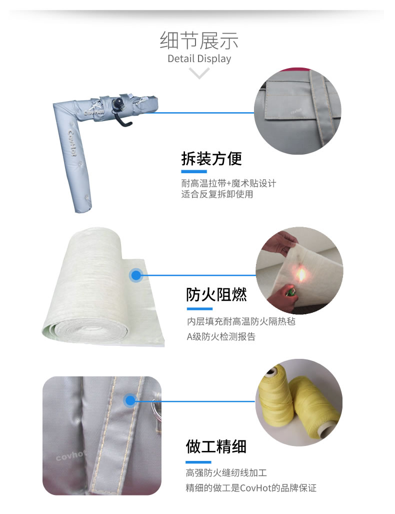 1.可對設備增加防凍保溫棉或安裝Covhot可拆卸防凍保溫衣保溫衣可以根據(jù)設備的尺寸進行量身定制,密閉性好,與設備具有很好的貼合度。夏天不需要了還可以輕松拆掉。